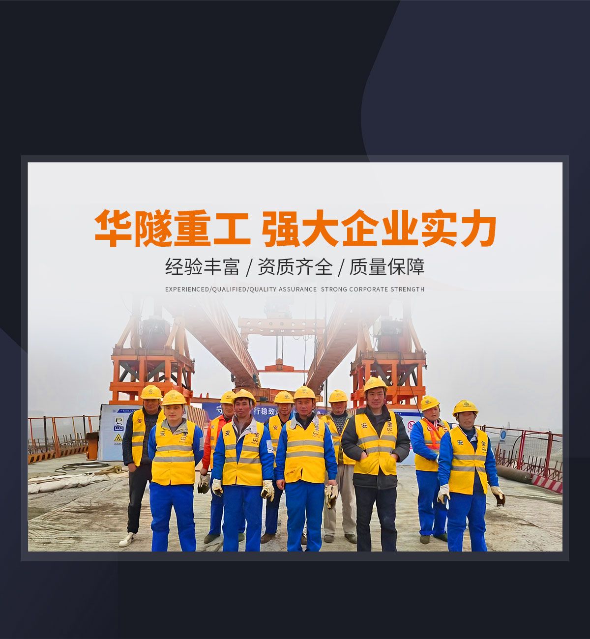 河南華隧重工機械裝備有限公司主要從事通用門式起重機、橋式起重機、電動單梁起重機,輪胎式起重機、架橋機、提梁機、遠梁平車、鋼絲繩電動萌蘆、卷揚機、起重配件制造、銷售:起重機械租賃、安裝和維修,起重設備園收,機械設備維修,鋼結構工程承包,橋梁工程及技術咨淘服務,銷售五金制品、機電設備:建設工程監理,建設工程設計,各類工程建設活動,建筑勞務分包,建筑物折除作業,施工作業,工程管理服務,土石方工程施工,裝如發運?! 」疽淹ㄟ^IS0國際質量、環境、健康與安全三合一標準認證,特種設備制造許可證和特種設備安裝改造維修許可證。擁有完熟的質量管理體系。嚴格的管理制度,強大的生產能力和先進的檢測手段,在保證產品質量的同時,也具備了極強的市場競爭力?! 」緢猿挚萍紕撔聻槔砟?,產品質量為核心,注重信譽,建立了減信可靠、快捷、思速。便利周到的售后服務網絡?! ∥覀儞碛械募夹g專家和技術服務隊伍為客戶提供充善的售前技術支持和全天候的售后服務體系,讓您無后顧之憂,享受一站式的超值服務。  “華隧重工,伴您成功“是華隧重工永遠的宗指,真被的希望與各界朋友攜手并進。共創輝準!